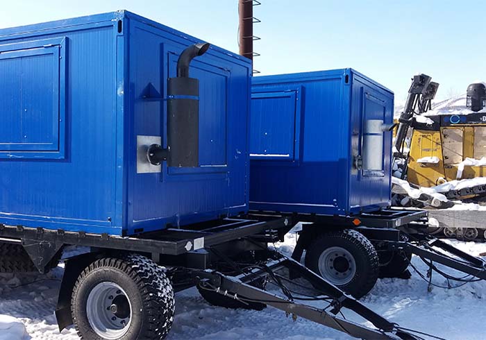 • блок-контейнер установлен на прицеп